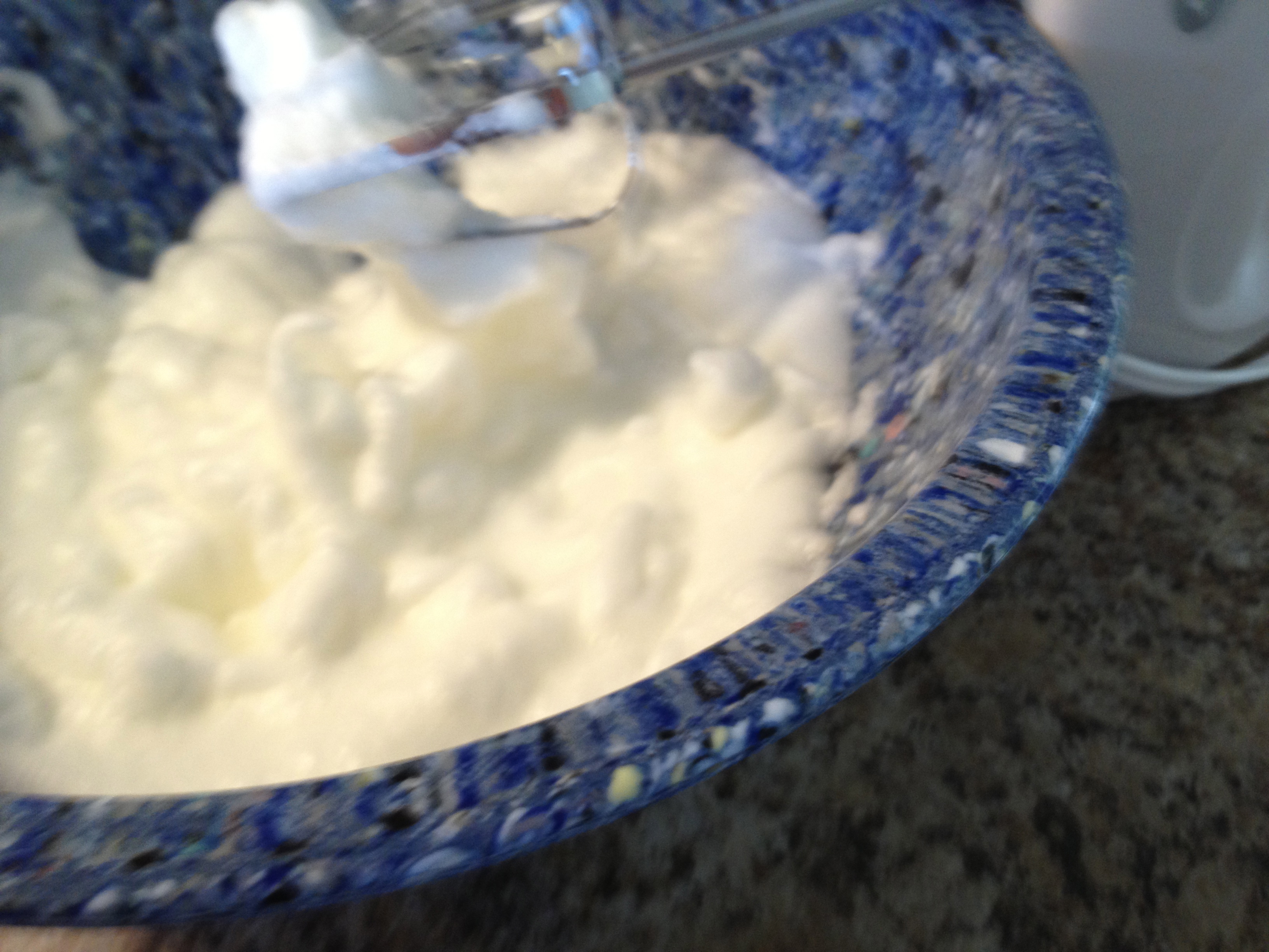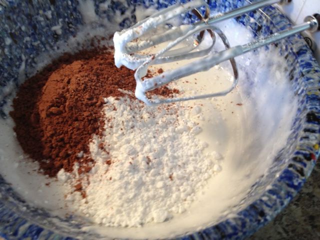 Next add the rest of the ingredients minus the extra 1/2 cup powdered sugar. Mix to a meringue.