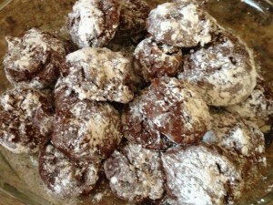 Cook for 12 minutes or until the tops crack.  After the cookies cool, roll them in a bowl with 1/2 cup powdered sugar.  Delicious!