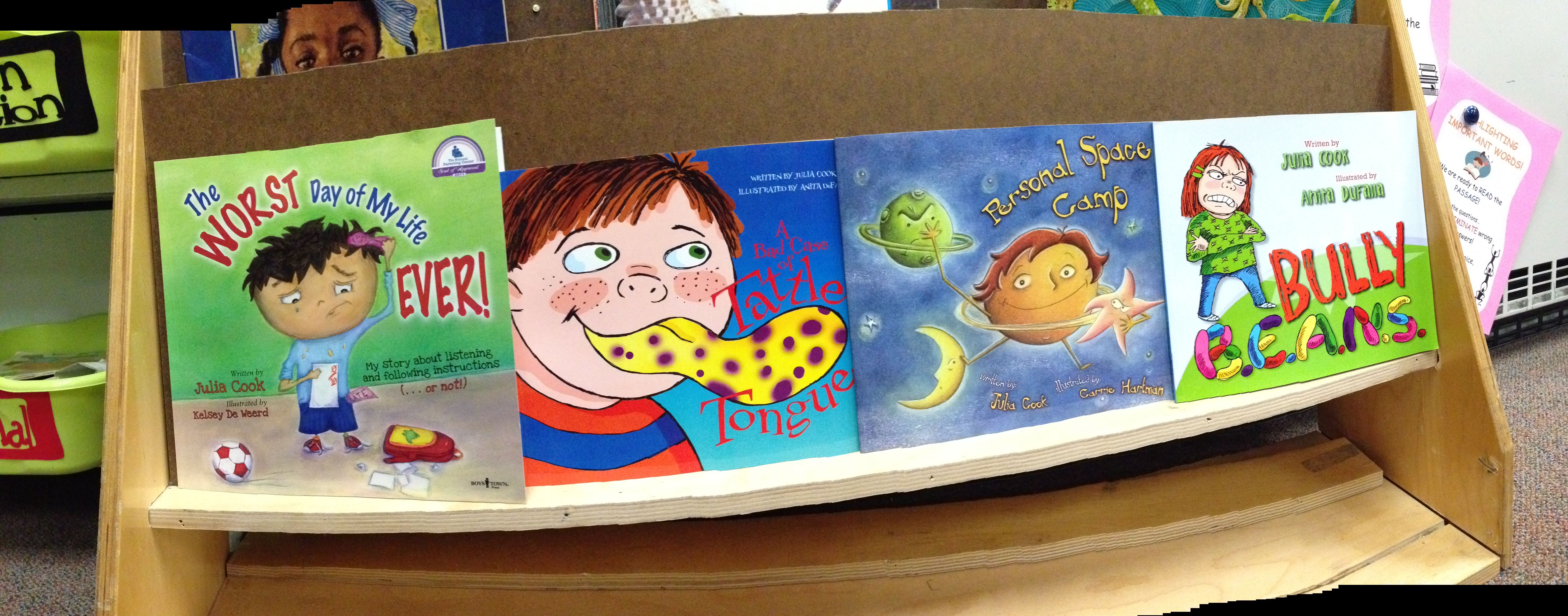 The reason I am writing this post is to describe my classroom and the supplies that I need for my care package. I signed up to try to get some good read aloud books for me to use in my classroom. For my non-teacher friends, a read aloud is a book that we read aloud in class. I love good read aloud books that have a good message for my students. There is this fabulous author named Julia Cook that writes these amazing life skills books for kids. Julia’s books teach such real lessons and I would love to have more of her books in my classroom.