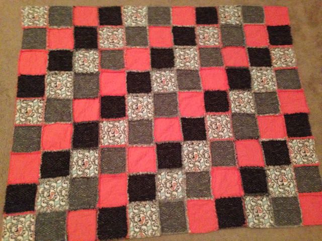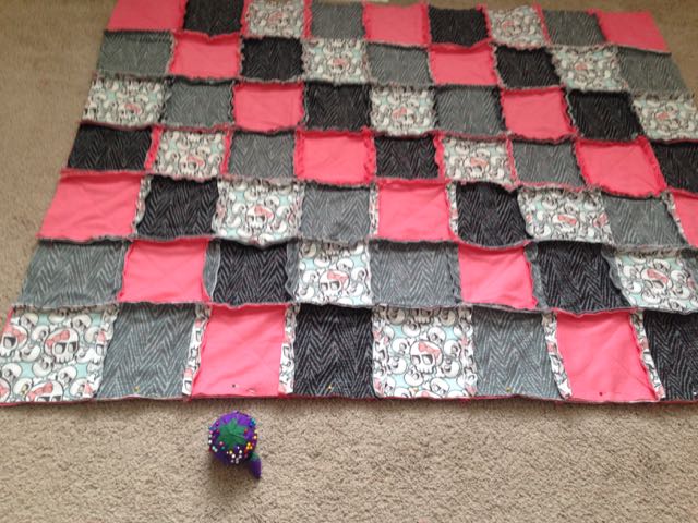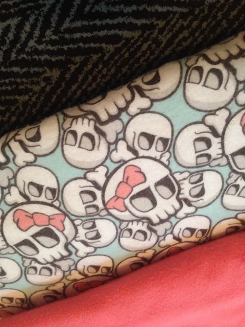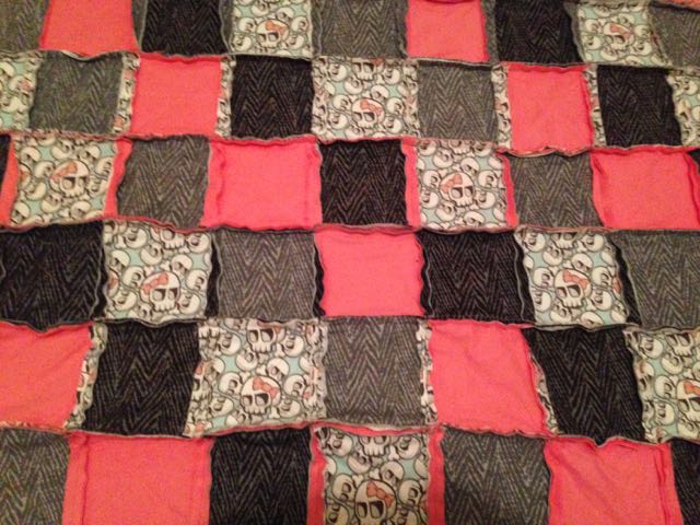 I posted a tutorial last month about how to make a flannel rag quilt using strips of flannel. This tutorial is a more advance version of the same technique. I was walking through the amazing flannel section at Joann’s and found the most adorable skulls with bows flannel and I had to have it! Alex loves skulls and since we are having a baby girl, I thought he would get a kick out of that fabric!