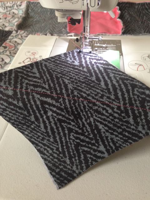 First, you need to cut your flannel into 6×6″ squares. I ended up folding the fabric in half and pressing it to get all the wrinkles out. Then I cut 6″ strips that I cut into 6×6″ squares. It makes it much easier when you have a rotary cutter and mat!After you cut out all of your squares, you need to lay out the pattern you would like your quilt to have on the front side.I ended up doing strips on the back side, and I was glad I did. It was hard enough to keep track of the pattern on front. Here I just laid out 9 of the same squares next to the front row it was coordinating with.Next, sandwich your front and back pieces and quilt an “x” on each one.I just used the table behind my sewing machine to lay them out in the order that they would be sewn into a row in.Once you quilt an “x” into each flannel sandwich in that row, put the back sides together and a 1/2 inch seam across. Sorry this is a terribly blurry picture, but you get the point.Now do the same to the next piece. Just remember you want that raw edge at the top so that your rag will all be on one side.Now press the seams open.This step is important when it comes to sewing the rows together!