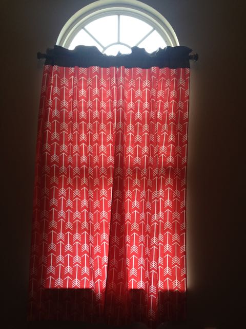 This dresser was my brothers when we were little. It has been in my stepdad’s shop as his tv stand for the past few years. It looks like a hot mess here, but you will be impressed to see what it looks like now. Troy sanded it down and we cleaned it up. I wish we would have gotten a picture of it sanded, but we were too excited to start painting!Look how beautiful it turned out! That chalk paint is some amazing stuff and it is just the right shade of mint! I am using this as my changing table, and on top is my changing pad cover that I sewed when Grandma Bloesser was here last week. Too adorable! I love it! And look at that beautiful accent wall! We even used the same knobs, just spray painted them with some metallic gray spray paint.Here are the adorable coral arrow curtains my grandma and I whipped up! They are the perfect touch!Here is my hot air balloon crib sheet complete with our ruffle crib skirt and teething rail!