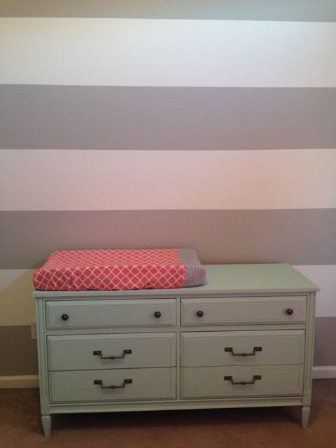 No one understood why I wanted gray walls for a nursery. They didn’t understand my vision of an accent wall with white stripes, but it turned out so beautiful! I guess mommies just know best!