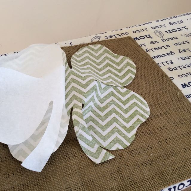 Now that you have your flag sewn, it is time to do the applique.  I used my Silhouette Cameo to cut out a large shamrock.  After measuring the amount of fabric I would need, I cut out a square and a matching square of Wonder-Under.