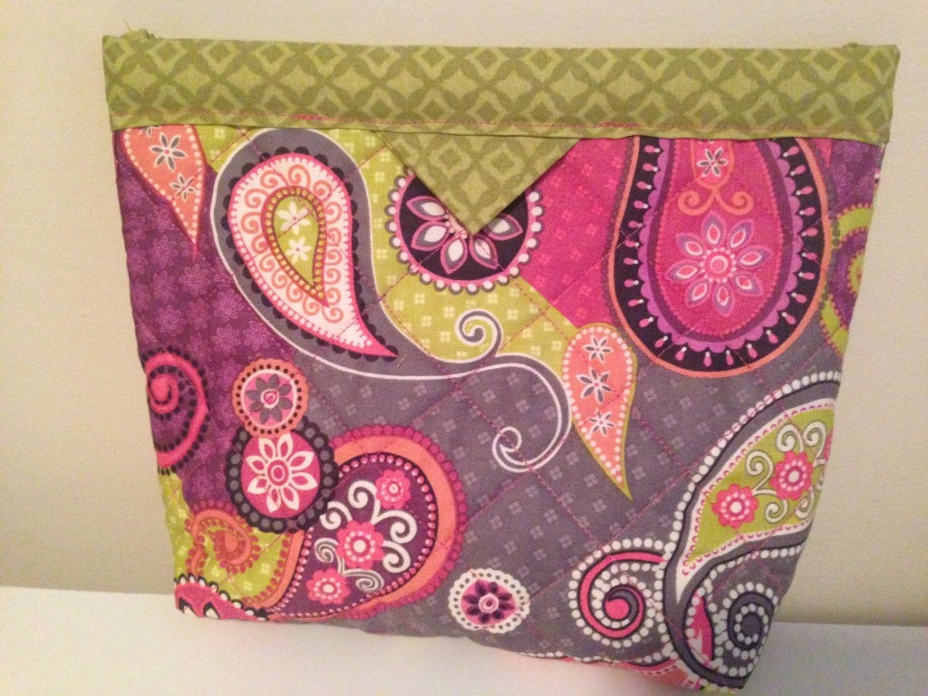 I made a ton of these for thank yous for my baby shower hostesses.  They turned out so cute and make the perfect makeup bag!  They all loved them and I am a pro at these by now!  They take a while to understand how to get them put together, but now I can whip one up in about an hour!