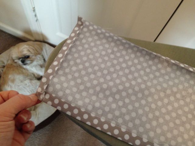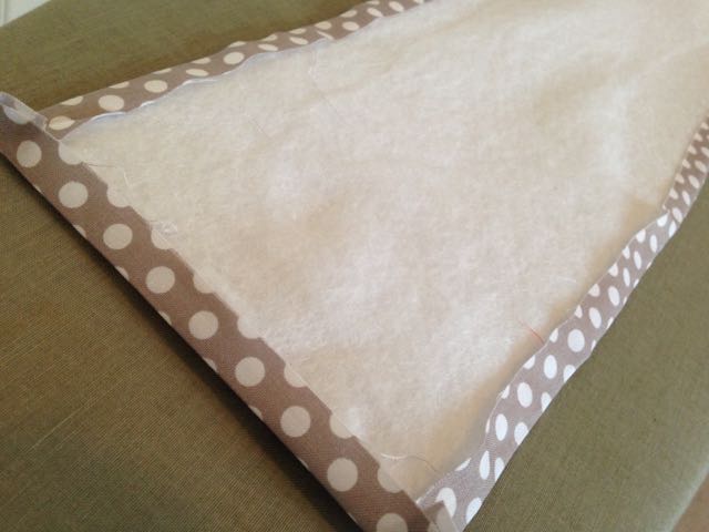 When you are finished, take your batting and tuck it into the folded seam all the way around one of the strips.