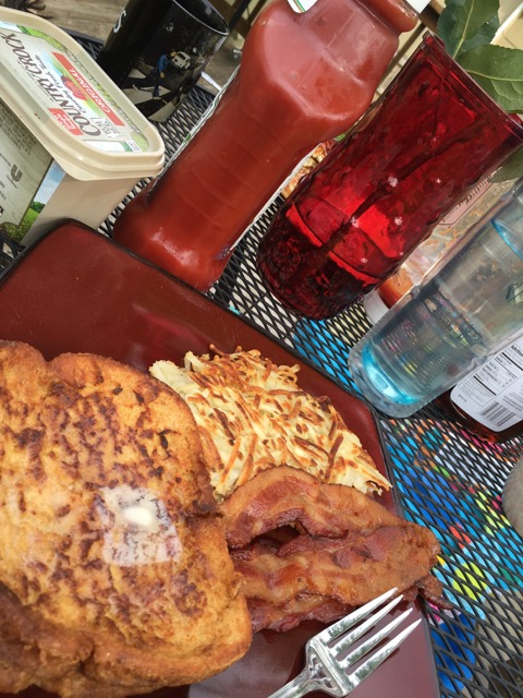 It was sweet because he slipped it out there and I was surprised. Avery did not take much of a nap, so we brought her out on the patio with us and she played in her exersaucer while we ate. I love eating breakfast with my family and eating outside!